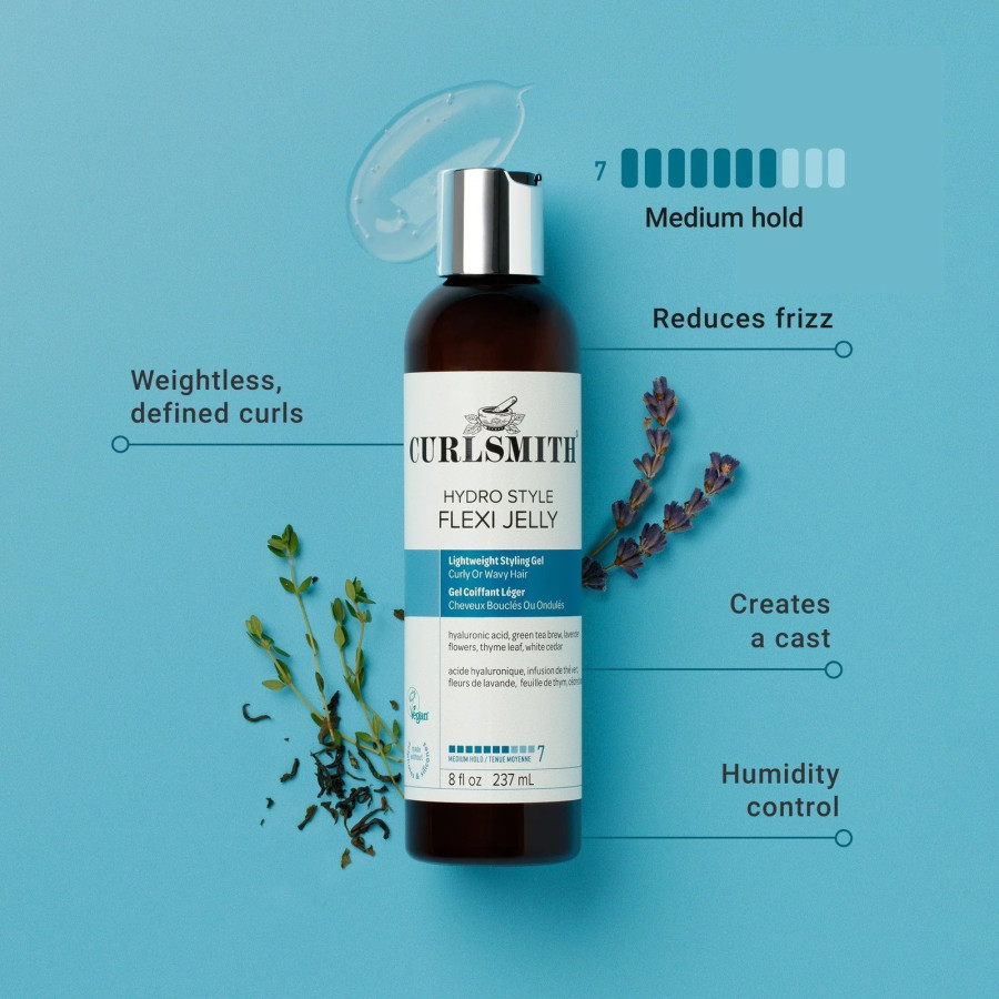 Flexi Jelly has been designed for those of who feel gels weigh the curls down and make the curls too flat. It has a very light silky consistency that spreads through the hair without effort, coating all curls evenly. The product will lock onto the strands without weighing them down or cause build-up. Depending on how much you apply, it may create a light cast while drying which will feel slightly crunchy to the touch, but this is only temporary. Once the hair is fully dry you just need to scrunch out the crunch to make your curls soft and bouncier than ever. .