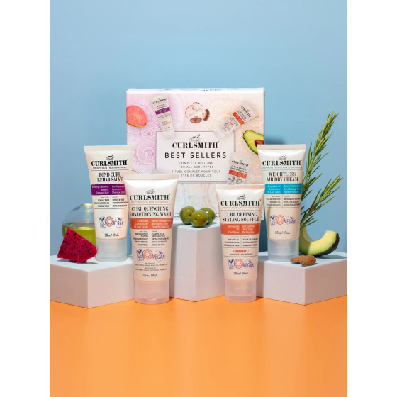 Візьміть невелику кількість крему. Почніть із розміру монети та додайте, якщо потрібно – навіть горошинка має значення! Нанесіть крем крізь вологе волосся, переконавшись, що ви рівномірно розподіляєте його та покриваєте кожне пасмо. Використовуйте метод «молитовних рук», щоб розгладити пасма . Це допомагає закрити кутикули та зменшити пухнастість! Обережно пожамкайте волосся, щоб стимулювати утворення кучерів. Додайте свій улюблений стайлер для додаткової фіксації та чіткості.